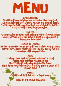 - Please note that it is a set menu and we won’t be able to cater to likes & dislikes, however please do inform us of any allergies/vegan/vegetarian when booking so we can accommodate accordingly.